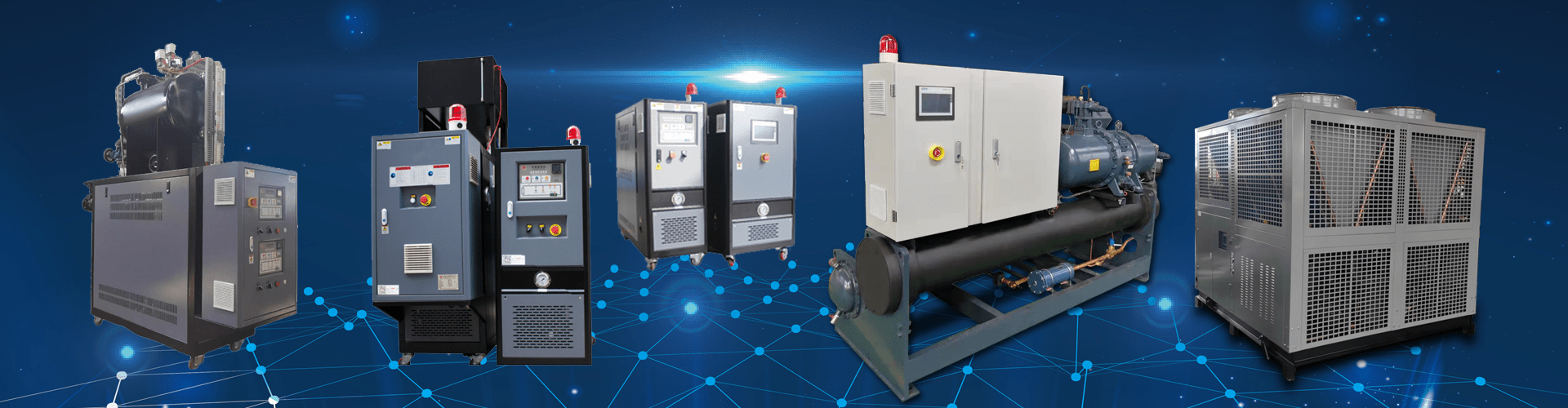 公司產品主要包括:工業冷水機、工業冷凍機、高低溫一體機、油溫機、水溫機、油冷機、螺桿式冷水機、熱泵機組、蒸發式冷水機組等工業溫度控制設備。針對不同行業的專業溫度控制需求,公司還研發出了行業專用溫控設備,如變速箱檢測、新能源汽車專用冷熱一體機、橡塑專用水溫機、壓鑄專用油溫機、防爆模溫機、防爆冷水機、液壓系統專用油冷機等。